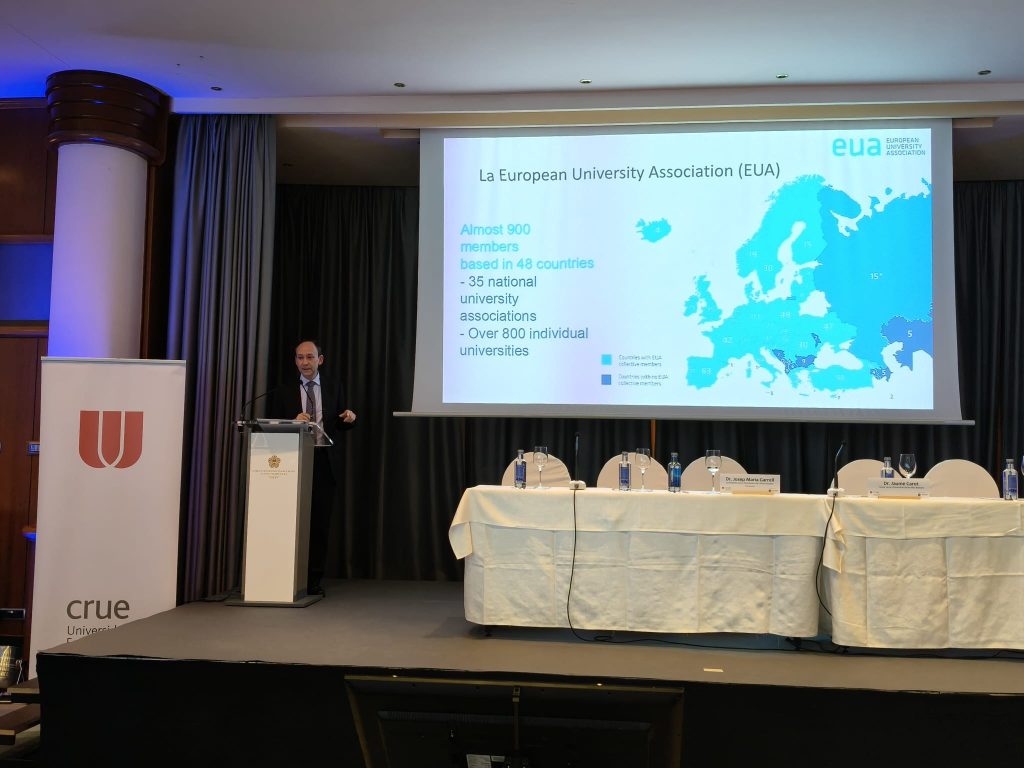 Durante el encuentro se impartió la conferencia «Modelos de financiación universitaria en Europa», a cargo de Josep Maria Garrell, presidente de la Asociación de Universidades Europeas (EUA).